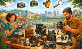 There’s a special kind of thrill in spotting vintage cameras tucked between brass candlesticks, mismatched teacu...
